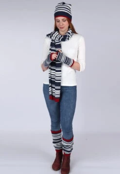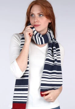 Länge 180 cm. Dieser Schal ist der perfekte Begleiter für die kalten Tage. Das gestreifte Muster und die tollen Farbakzente runden den Maritimen Look ab.