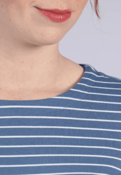 Sportlich-romantisches Sweatshirt mit Rundhals. Im maritimen Streifen-Look ist Karolina ein perfekter Allrounder. Besonders schön ist die kleine Stickerei.