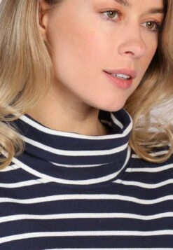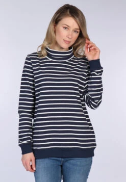 Legerer Streifen Pullover mit Stehkragen für den sportiven und bequemen Alltagsstyle. Ein must-have zu kurzen Jeans für den maritimen Urlaubslook.
