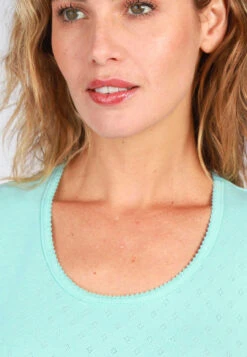 Länge 64,5cm (M). Mit zartem Ajour-Muster und aus hochwertiger und hautfreundlicher Baumwolle kommt unser Sorgenfri Klassiker Maren. Die kleine Muschelkante am Ausschnitt unterstreicht den sportiv romantischen Look.