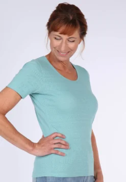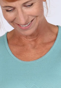 Mit zartem Ajour-Muster und aus hochwertiger und hautfreundlicher Baumwolle kommt unser Sorgenfri Klassiker Maren. Die kleine Muschelkante am Ausschnitt unterstreicht den sportiv romantischen Look.