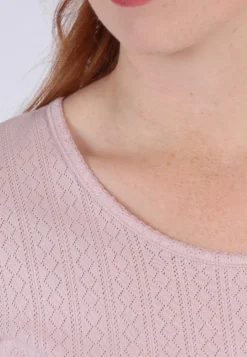 Mit zartem Ajour-Muster und aus hochwertiger und hautfreundlicher Baumwolle kommt unser Sorgenfri Klassiker Maren. Die kleine Muschelkante am Ausschnitt unterstreicht den sportiv romantischen Look.