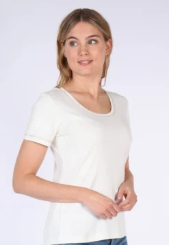 Klassisch-sportives Shirt mit Kontrastnähten. Eine feminine Silhouette und ein tolles Tragegefühl zaubert Oriana aus reiner Bio-Baumwolle.