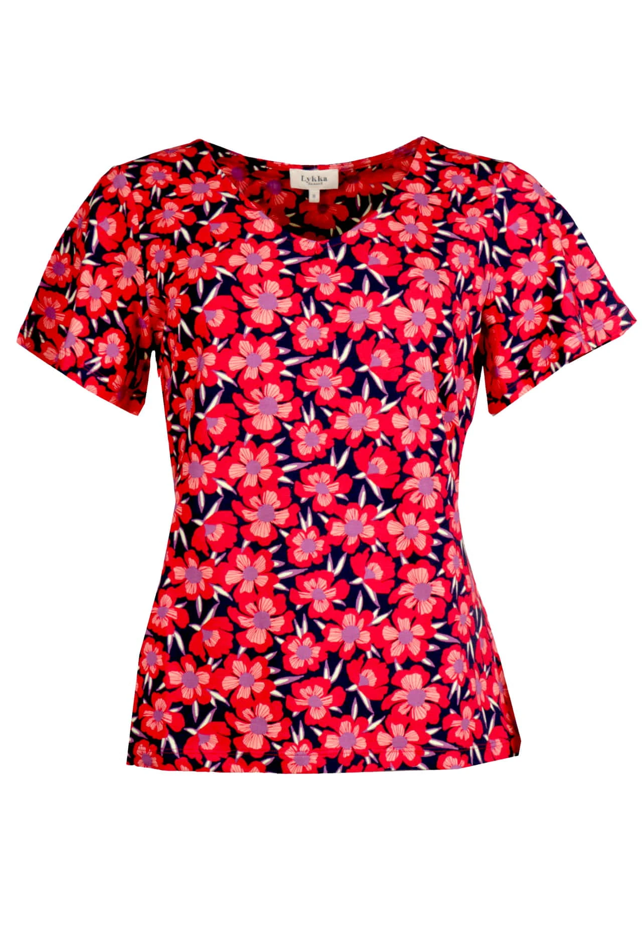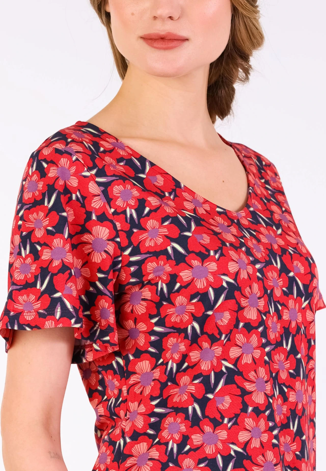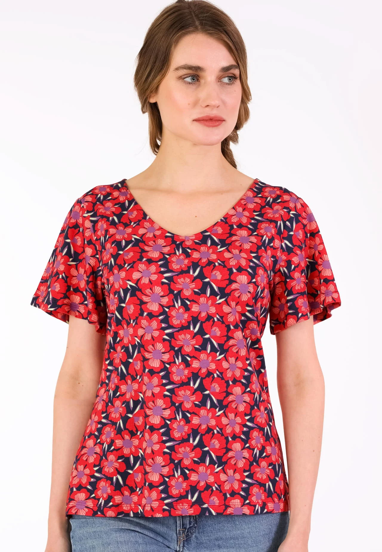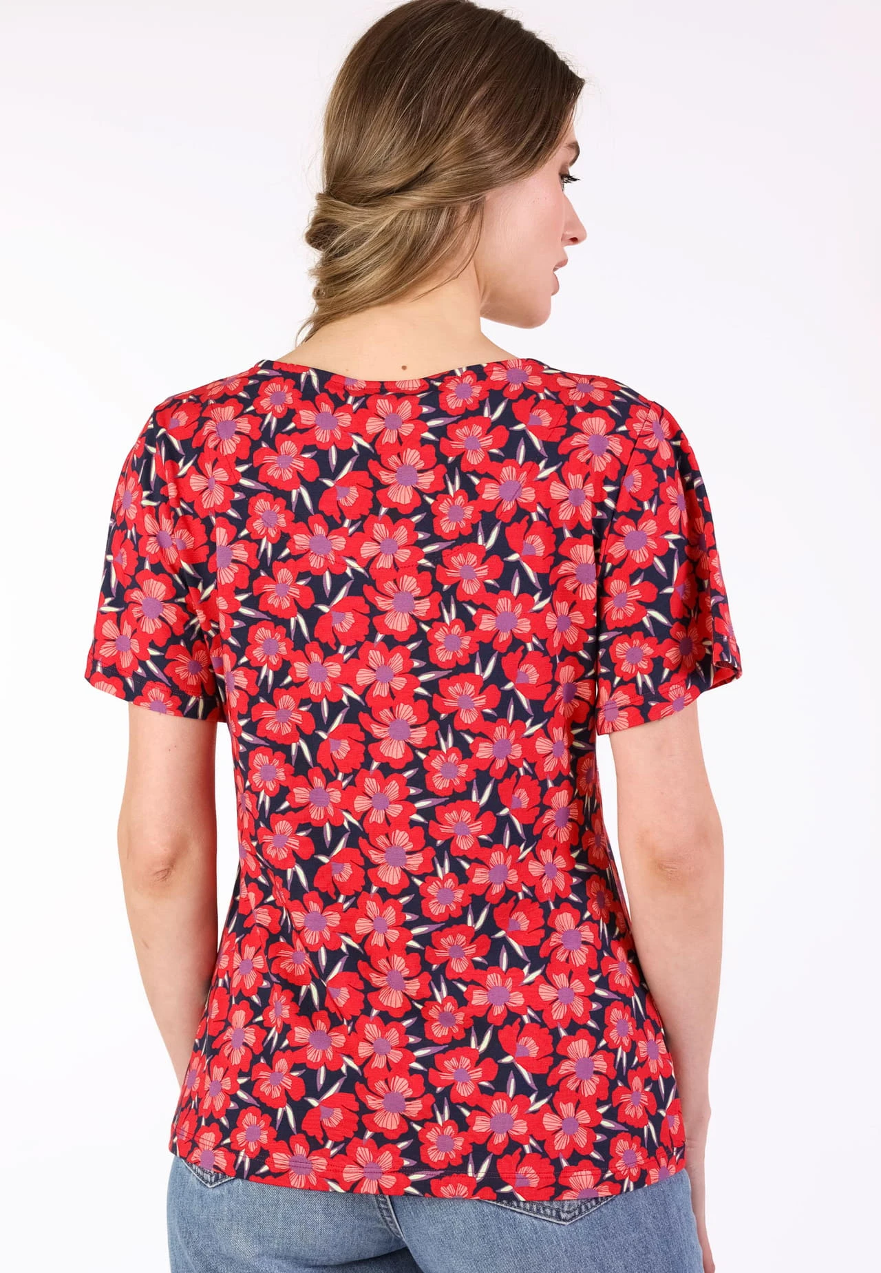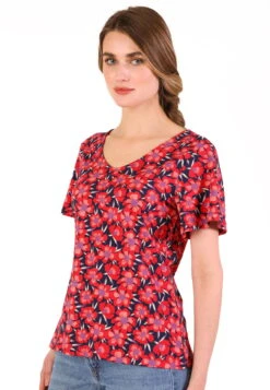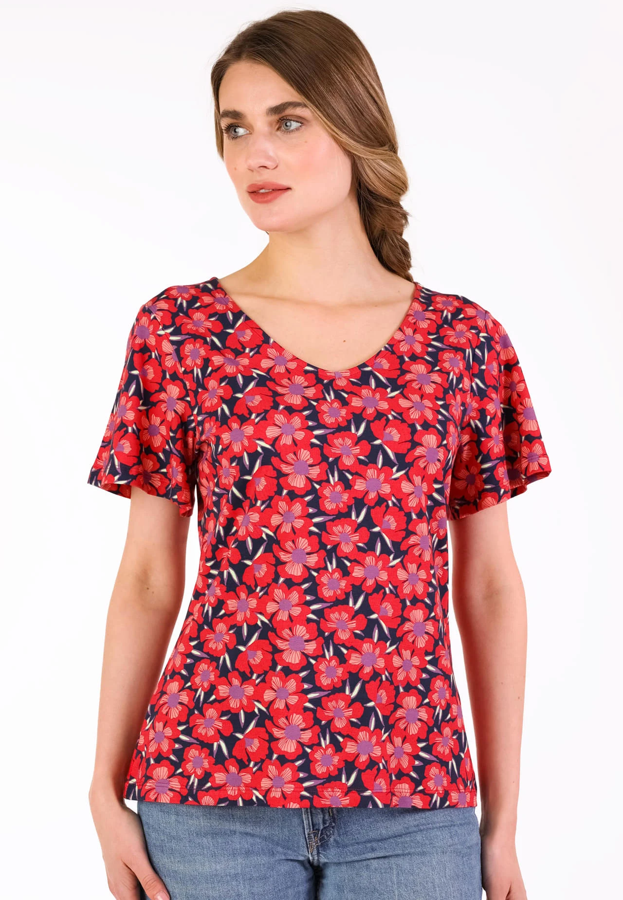 Länge 62cm (M). Unser zauberhaftes T-Shirt Violette mit Flügelärmeln vereint Eleganz und Komfort in einem zeitgemäßen Design. Die Ärmel setzen einen stilvollen Akzent und bieten gleichzeitig ein angenehmes Tragegefühl. Das exclusive Muster macht dieses Shirt zu einem Liebelingsstück.