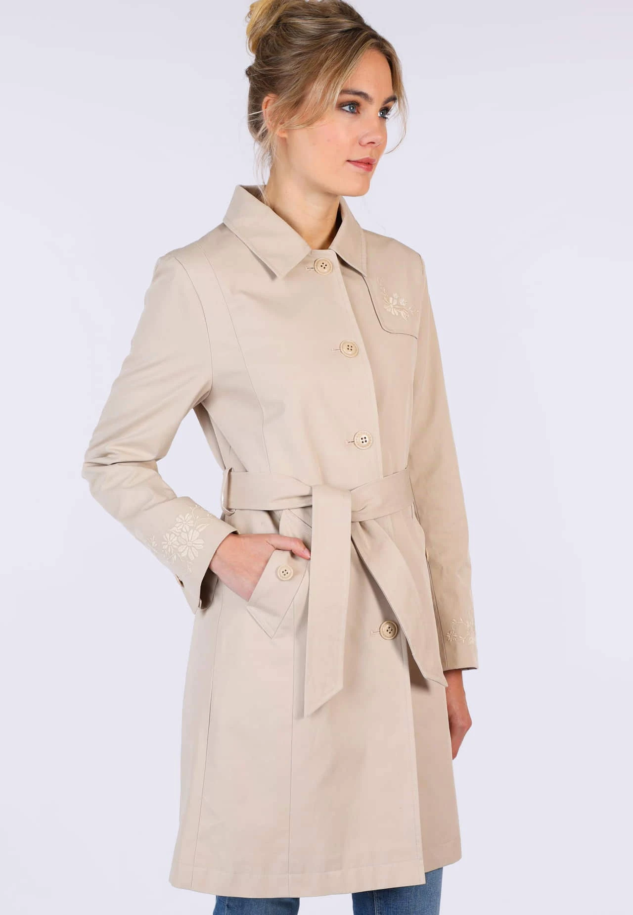 Länge 89cm (M). Ergänzen Sie Ihre Garderobe um einen echten Klassiker. Unser Trenchcoat LEHNY vereint Funktionalität mit modischen Akzenten und besticht mit seinem eleganten Design. Ein besonderes Highlight ist die aufwändige Stickerei, die ihm zusätzlich einen edlen Look verleiht. Der Gürtel, den man leger in der Taille binden kann, sorgt für eine feminine Silhoutte. Praktische Taschen bieten Platz für Ihre wichtigsten Utensilien. Aus hochwertigem Material hergestellt, bietet er einen hohen Tragekomfort und ist ein absolutes Must-Have.