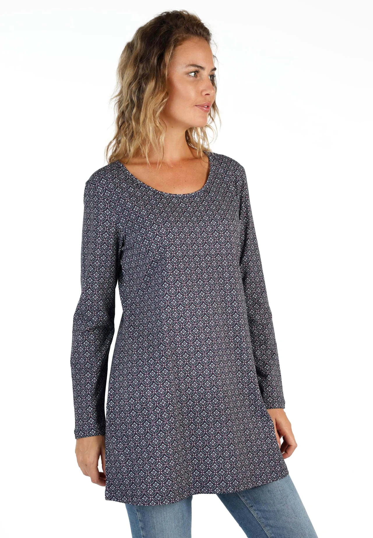Länge 80cm (M). Unser hübsche Tunika Aneta mit dreiviertel Ärmeln hat einen femininen Rundhalsausschnitt mit charmanten kleinen Zierfalten. Die lässige Passform und hochwertige Baumwoll-Jersey-Qualität bietet einen hohen Tragekomfort.