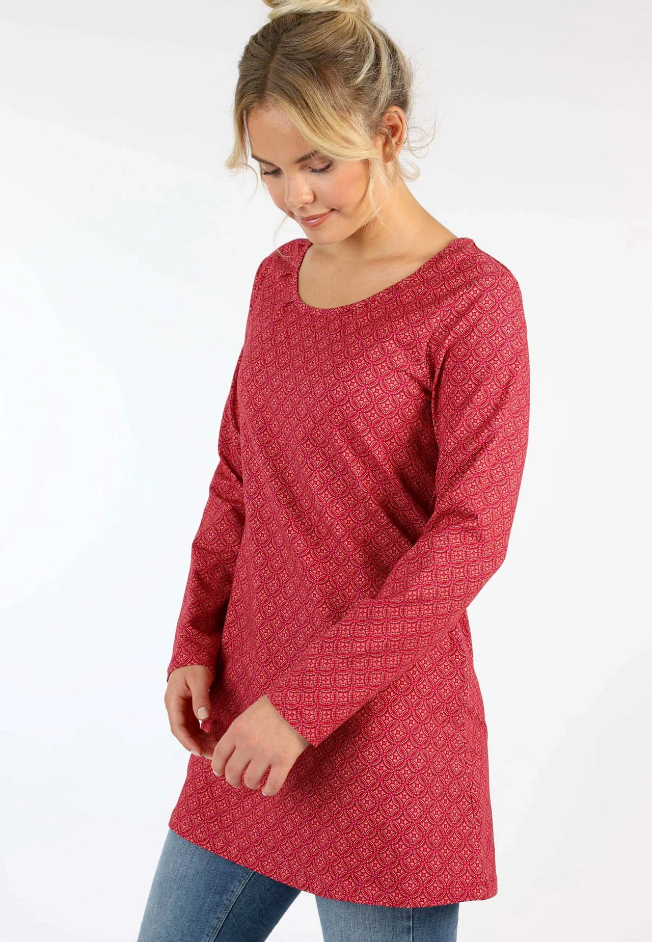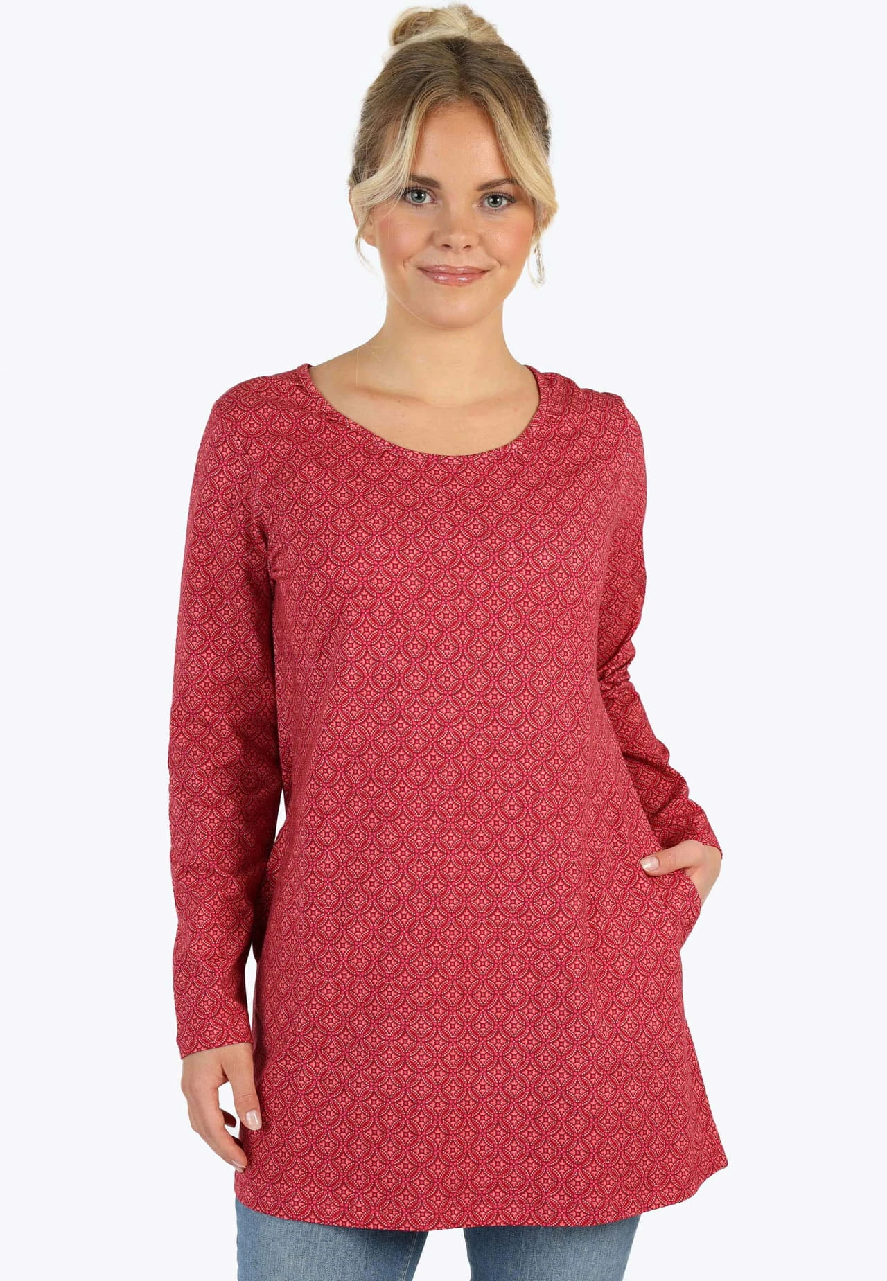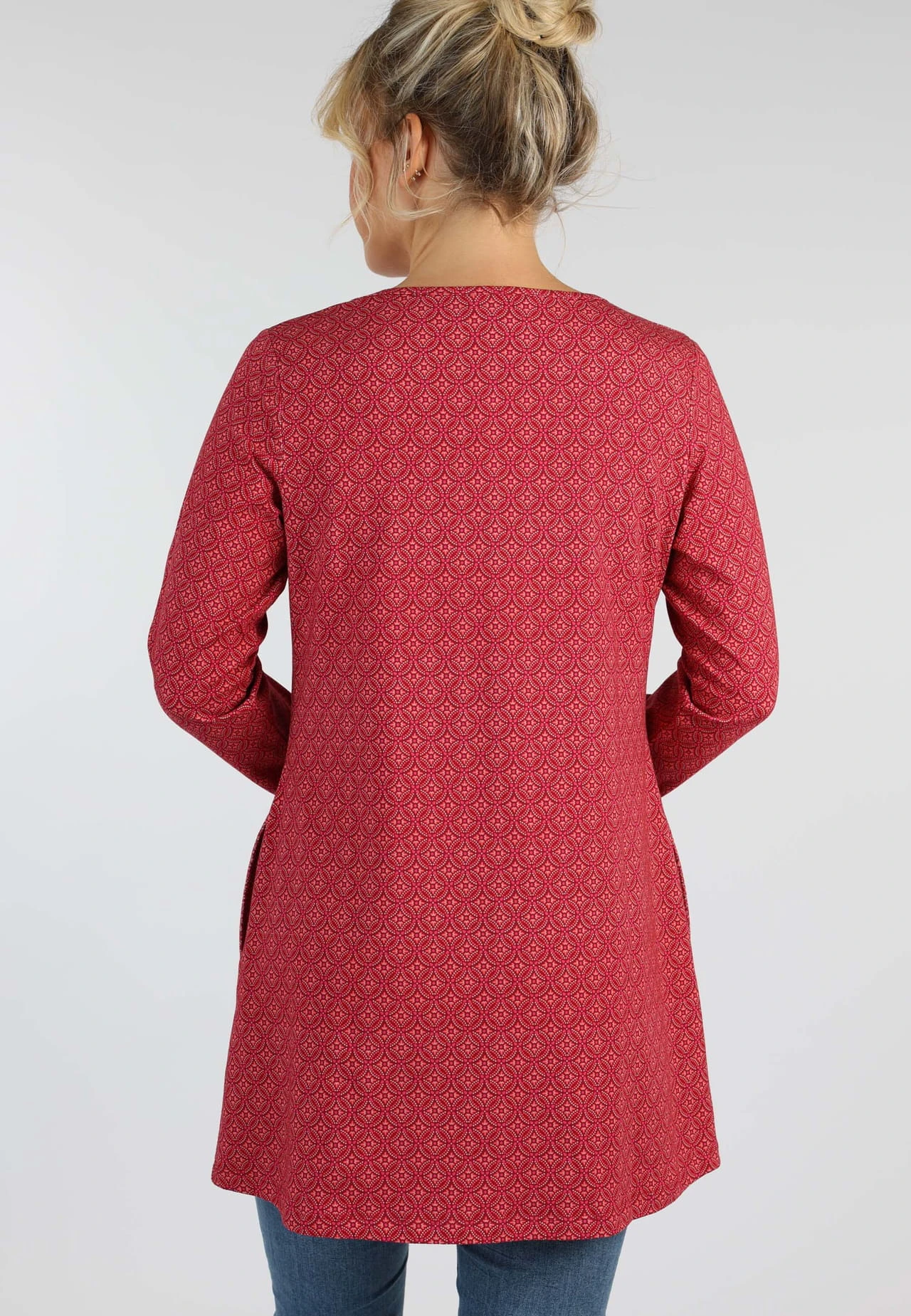 Länge 80cm (M). Unser hübsche Tunika Aneta mit dreiviertel Ärmeln hat einen femininen Rundhalsausschnitt mit charmanten kleinen Zierfalten. Die lässige Passform und hochwertige Baumwoll-Jersey-Qualität bietet einen hohen Tragekomfort.