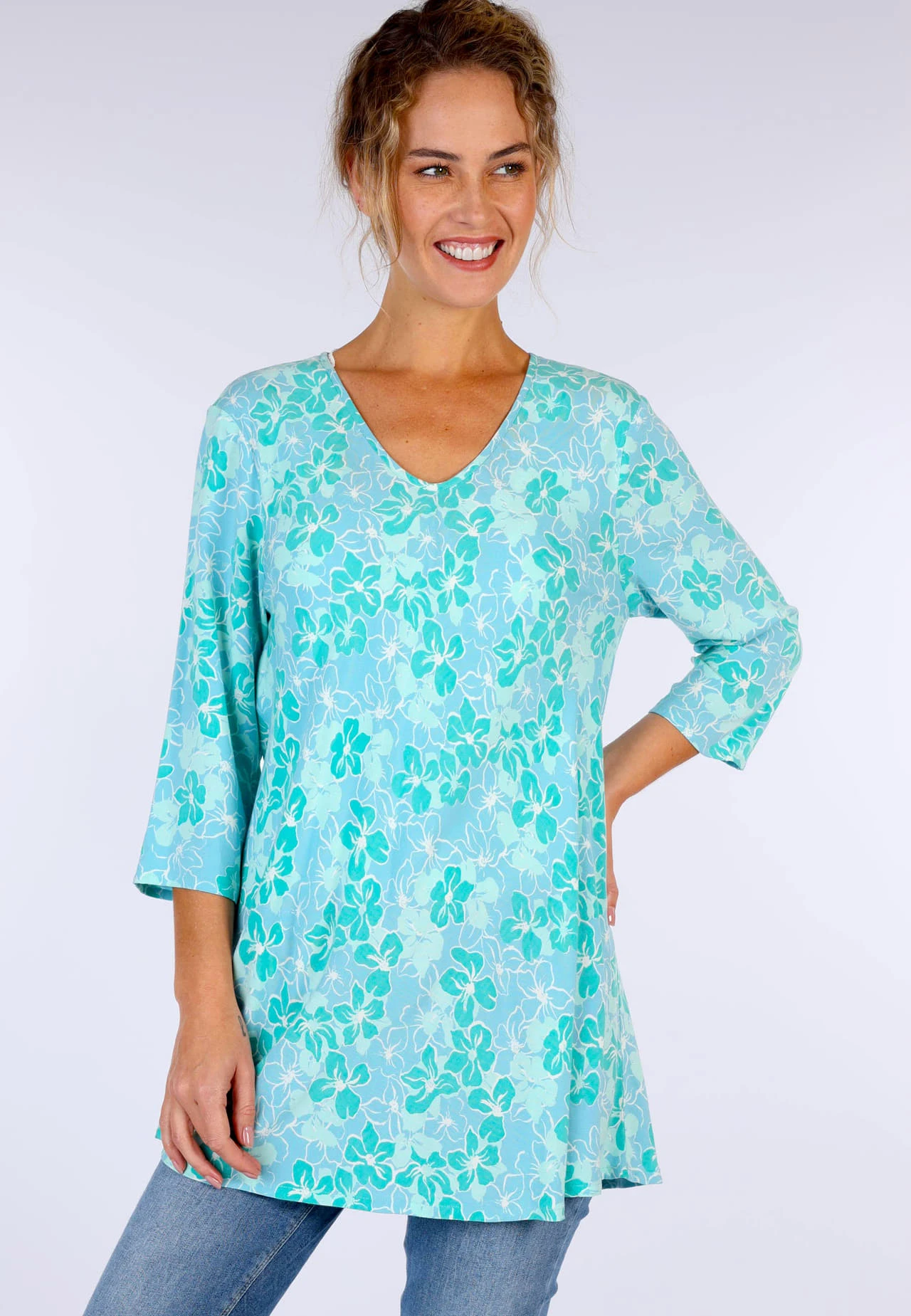 Länge 76cm (M). Die aus weicher Viskose gefertigte Tunika Babsi hat einen leichten Schwung und schmeichelt somit jeder Figur. Der exklusive Sorgenfri Druck in tollen Farben rundet das Design ab.