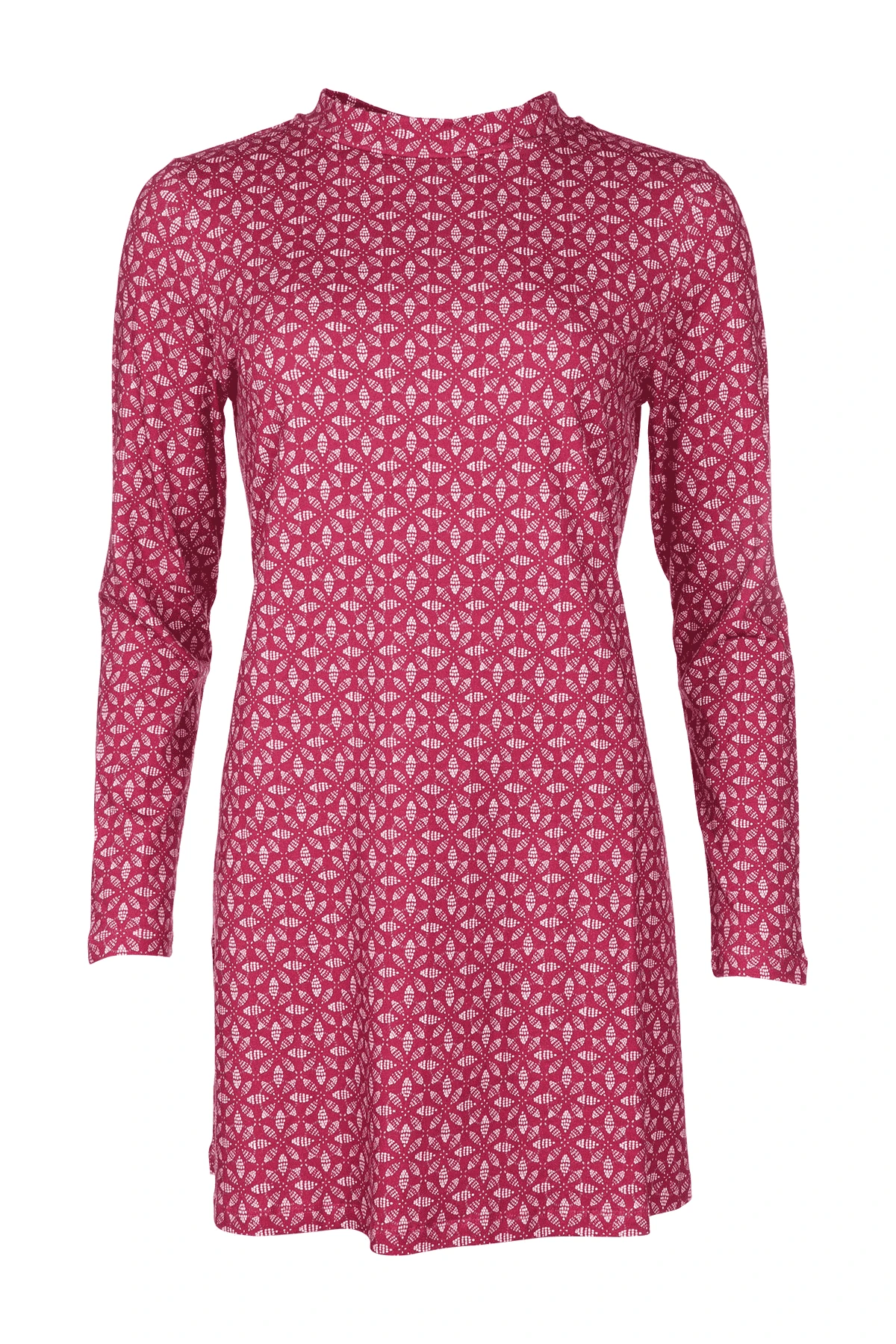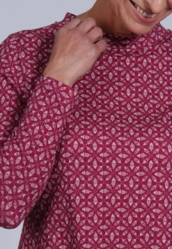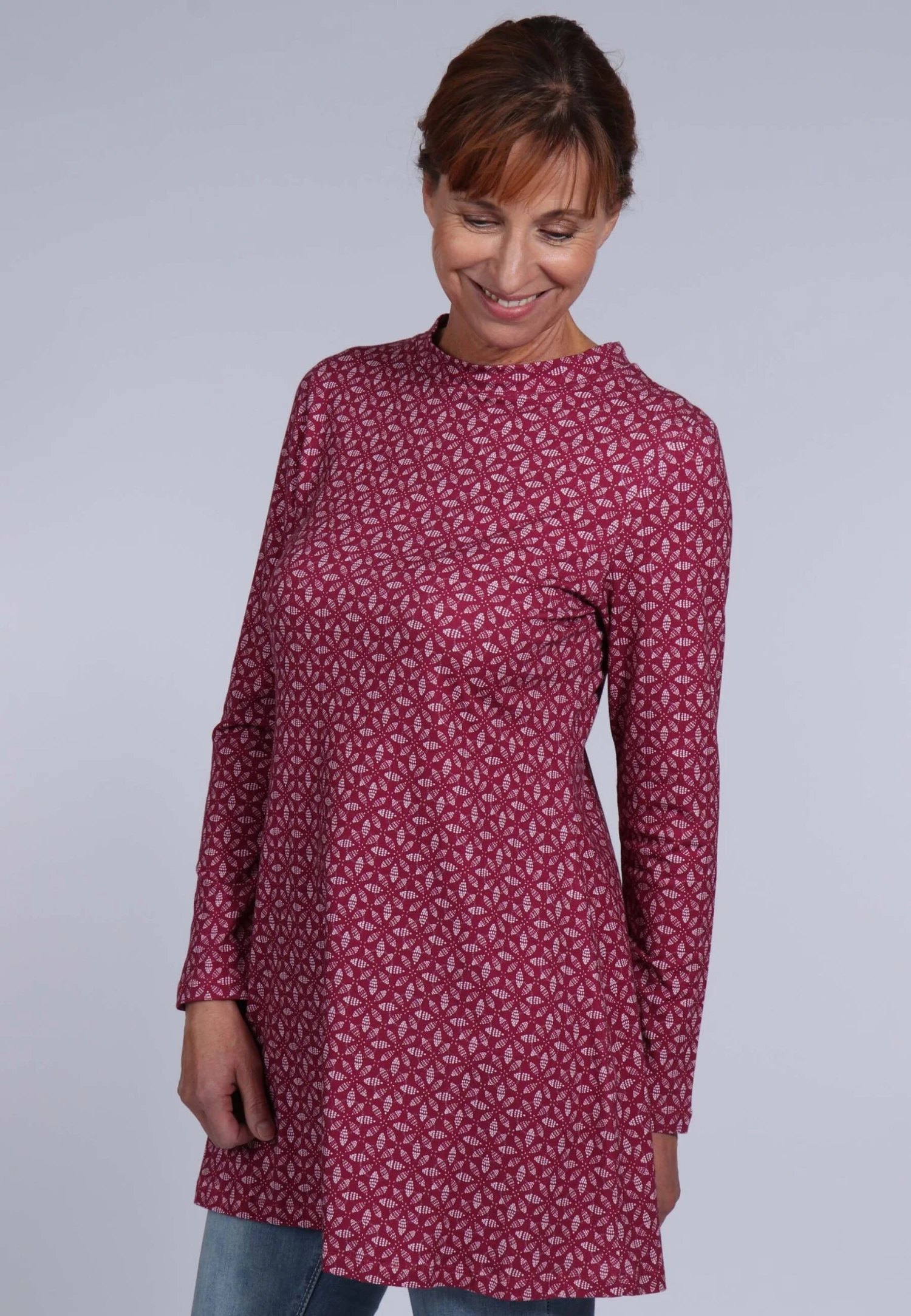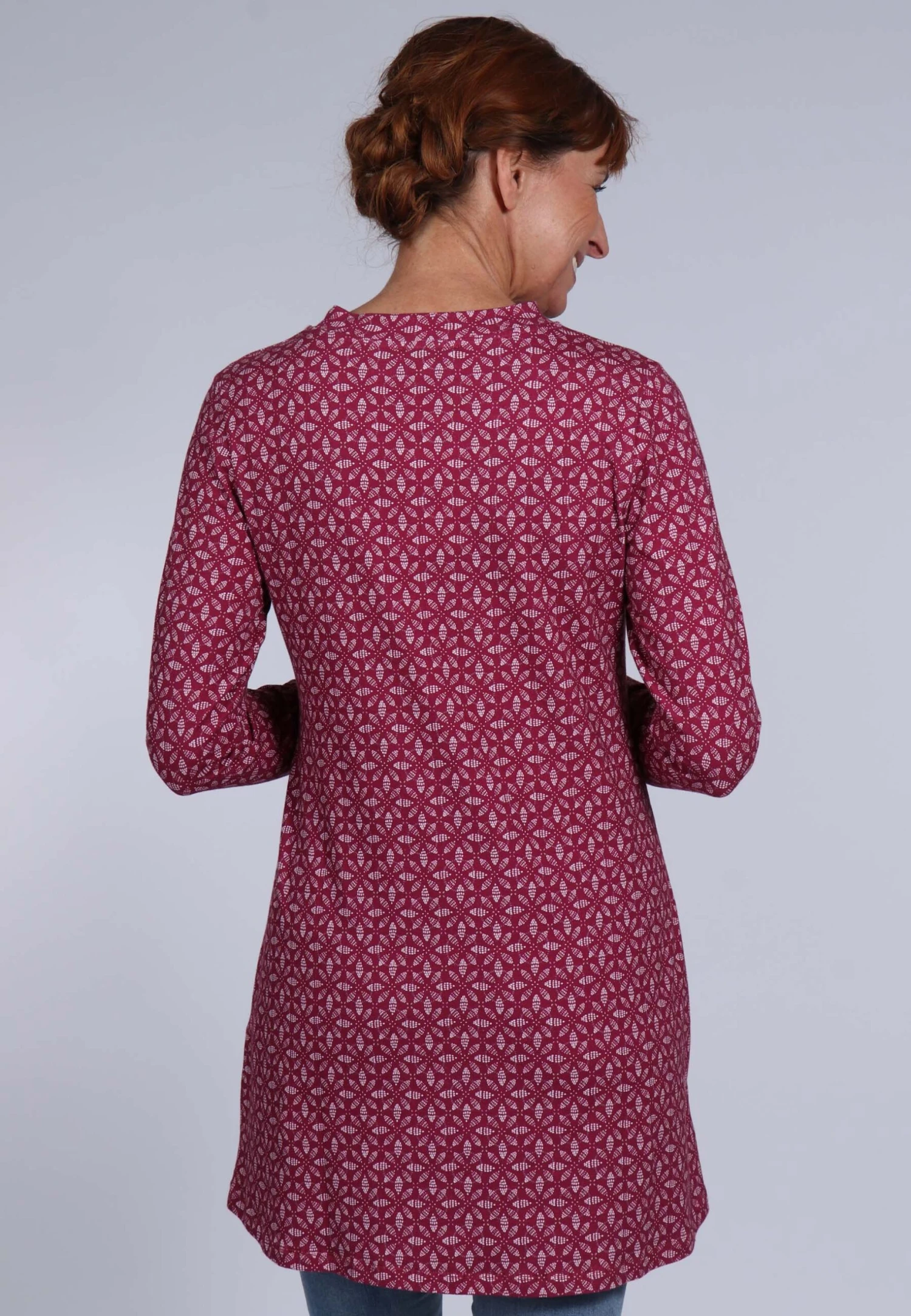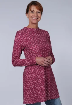 Unsere Tunika Farah vereint nordisches Muster und klassische Schnittführung. Zudem trägt es sich, dank der weichen Baumwoll-Jersey-Qualität, weich und bequem auf der Haut.