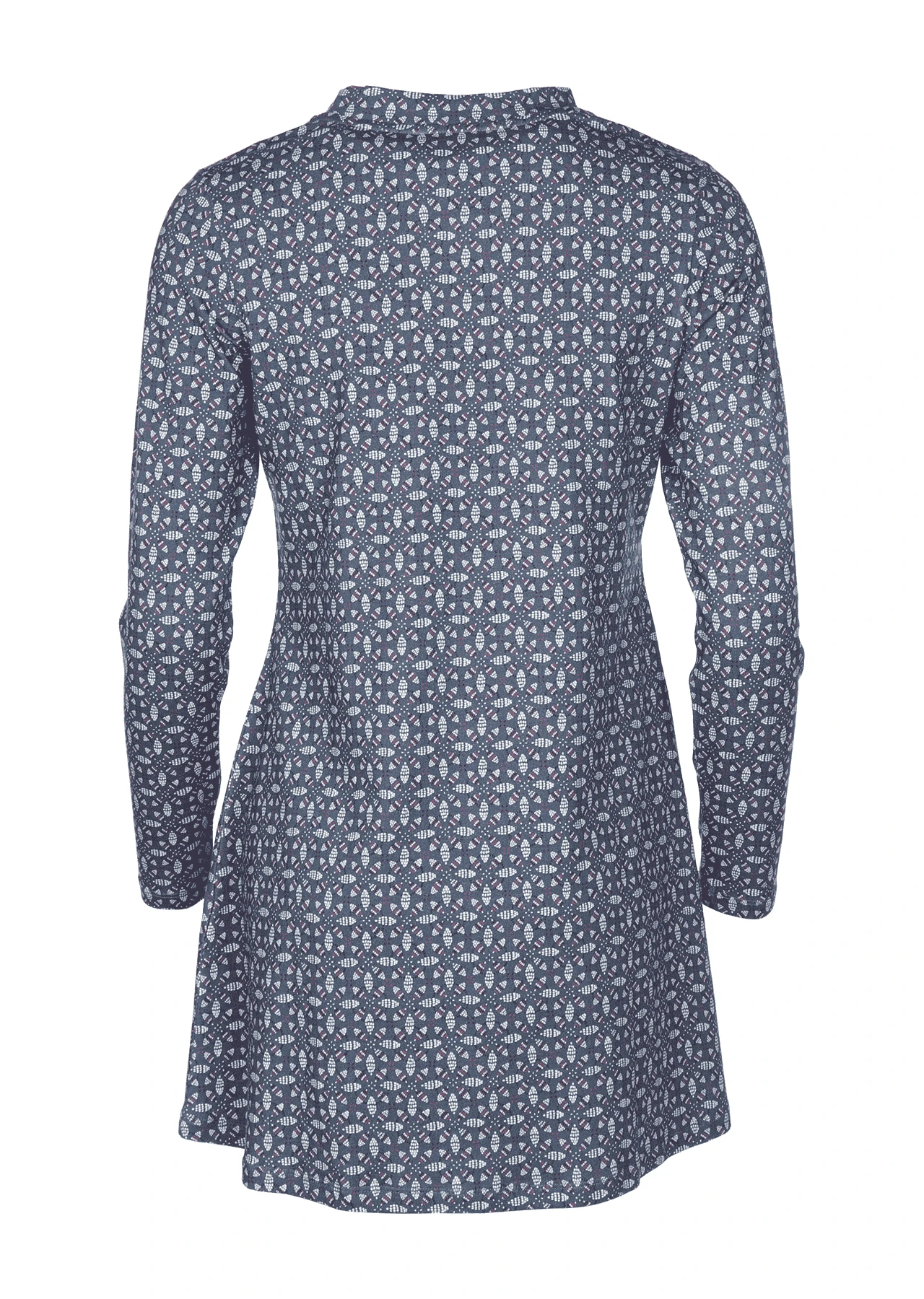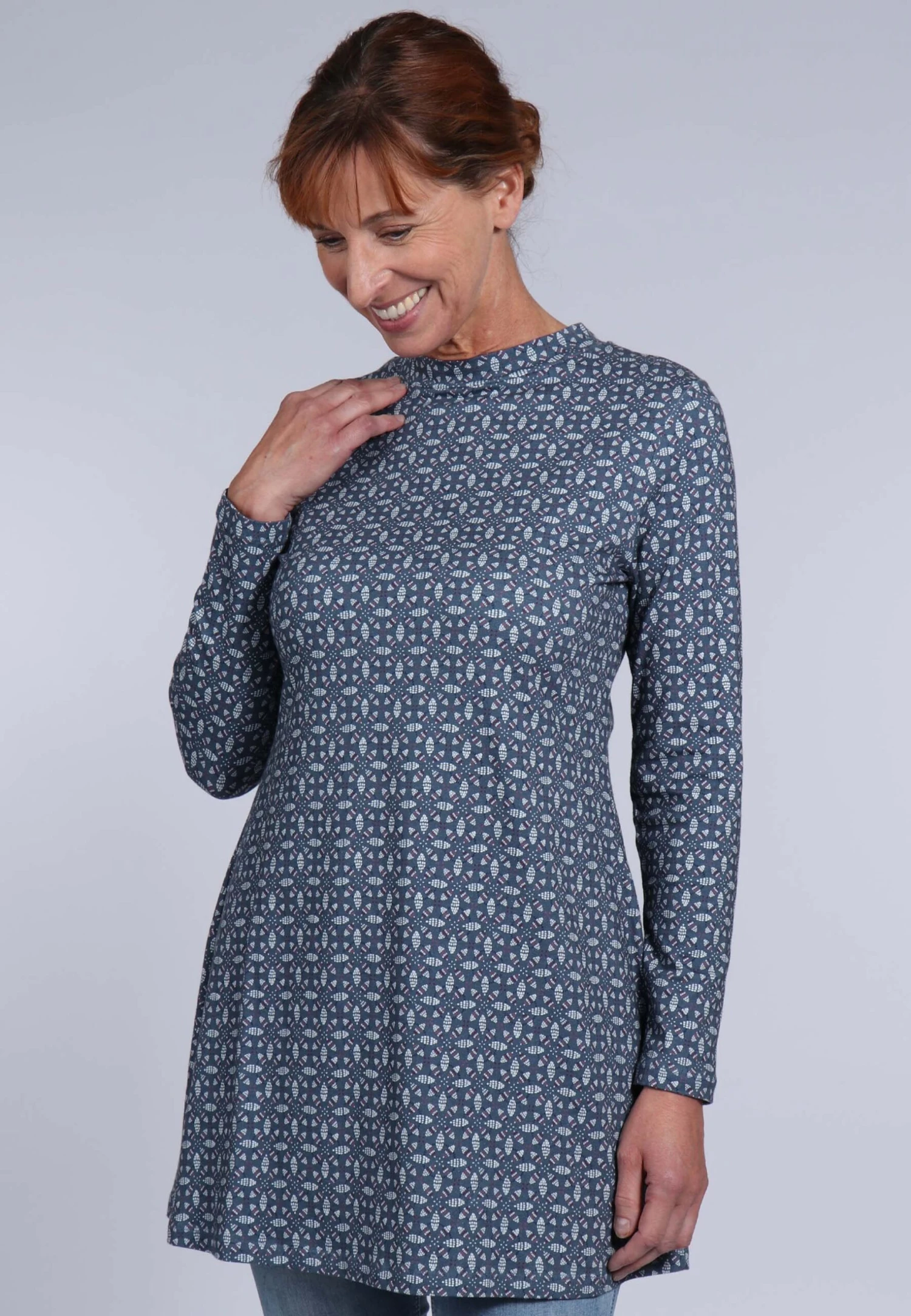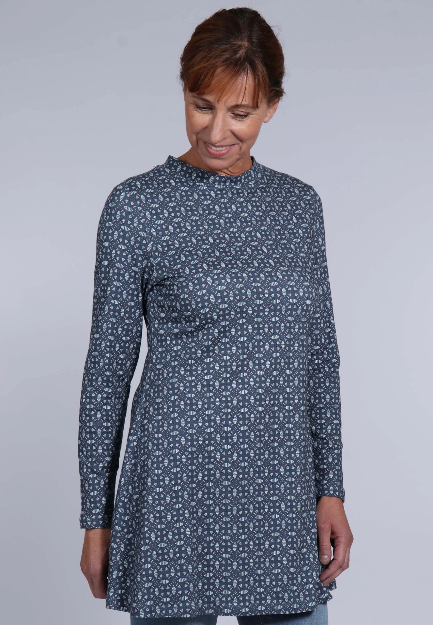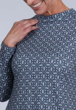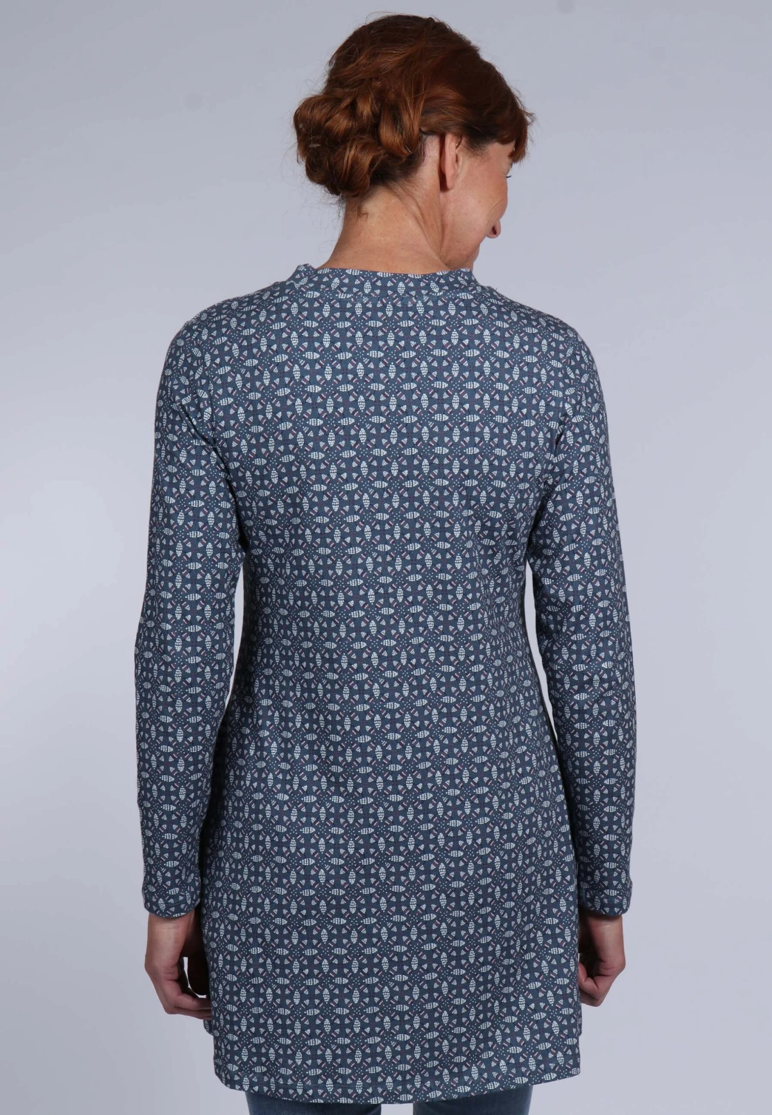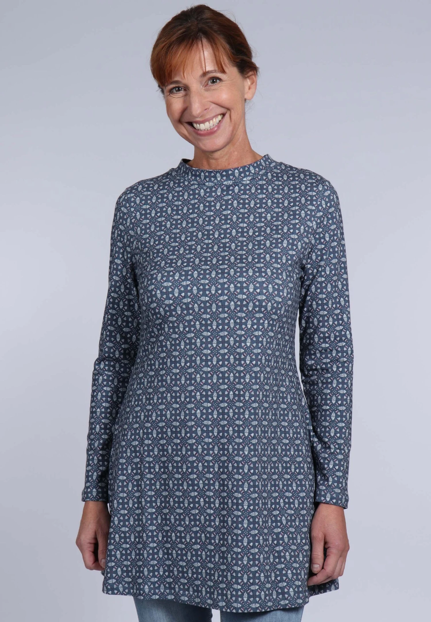 Unsere Tunika Farah vereint nordisches Muster und klassische Schnittführung. Zudem trägt es sich, dank der weichen Baumwoll-Jersey-Qualität, weich und bequem auf der Haut.