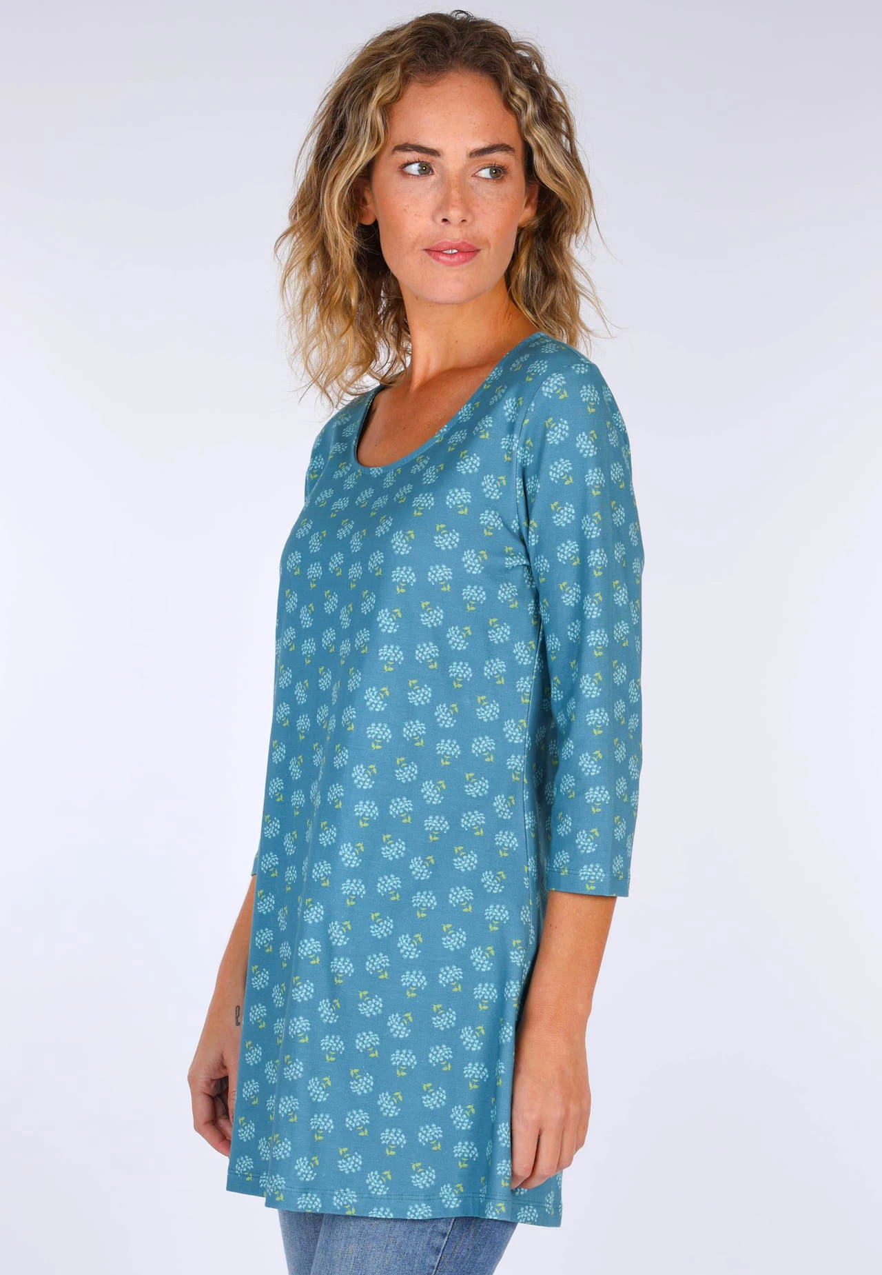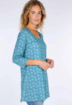 Länge 80cm (M). Vielseitig und super bequem ist unsere Jumana Tunika mit weiterem Rundhals und 3/4 Arm aus hochwertiger und weicher Baumwoll-Jersey Qualität. Am Saum etwas weiter ausgestellt, lässt sie sich in den tollen Sommerfarben sehr schön zu Jeans kombinieren.
