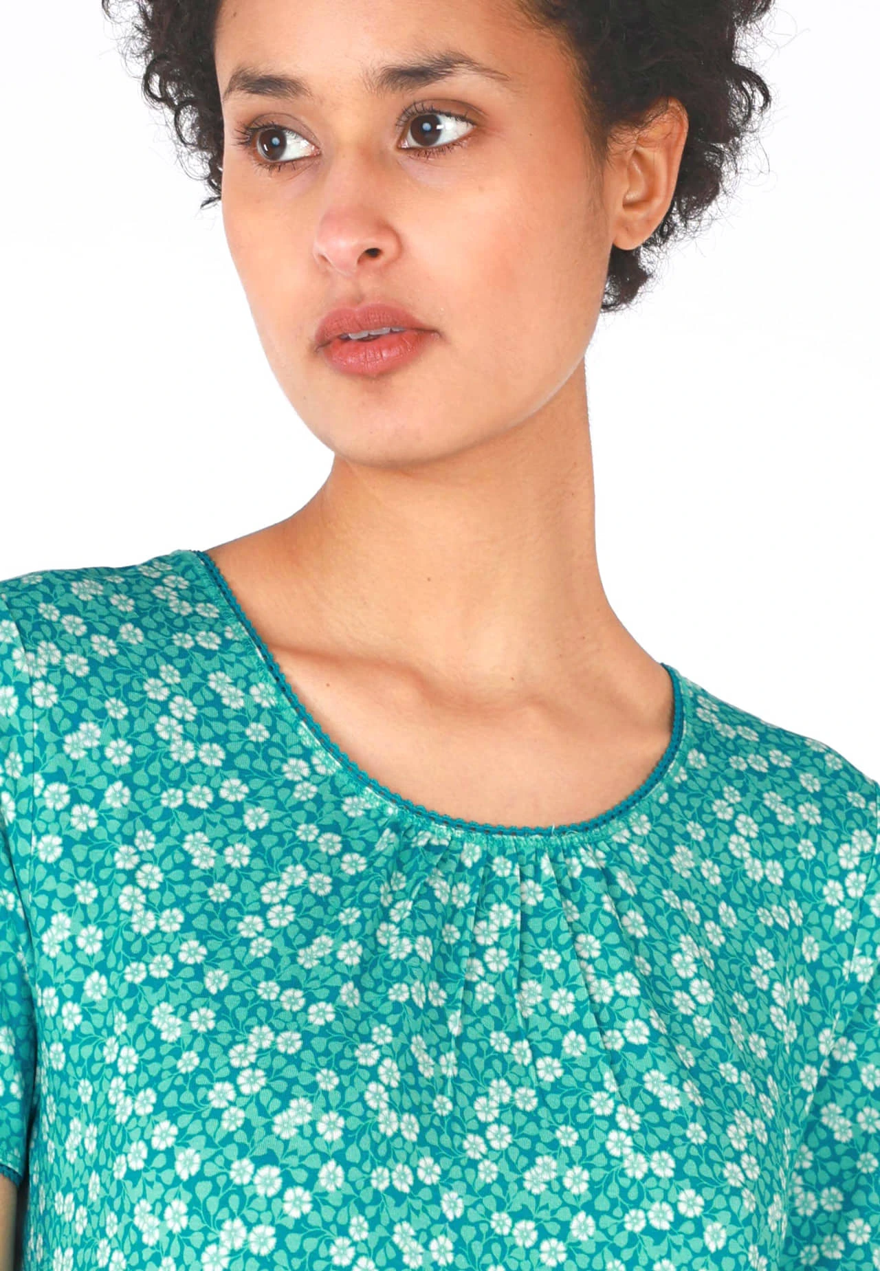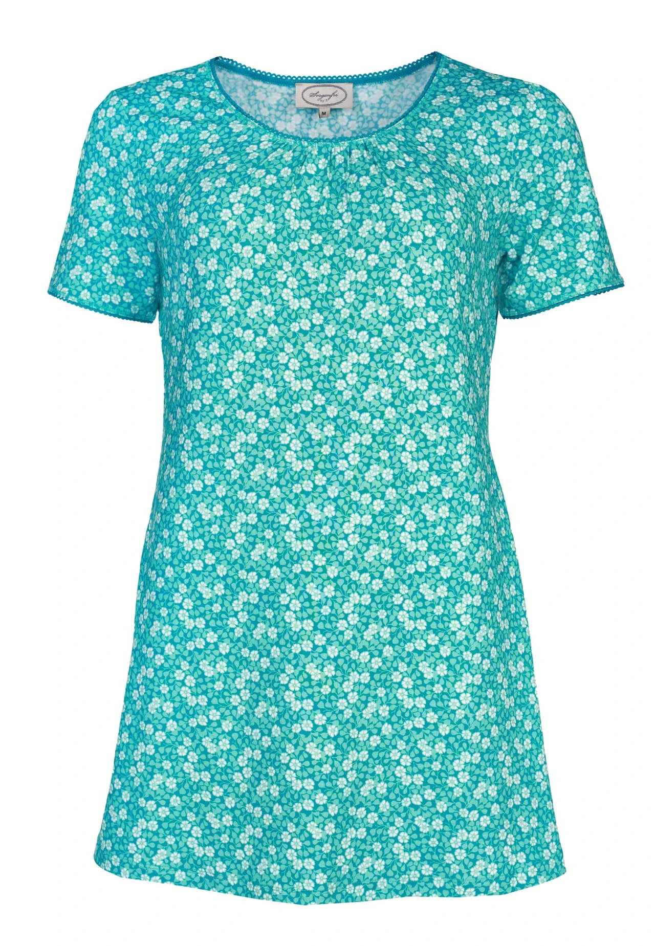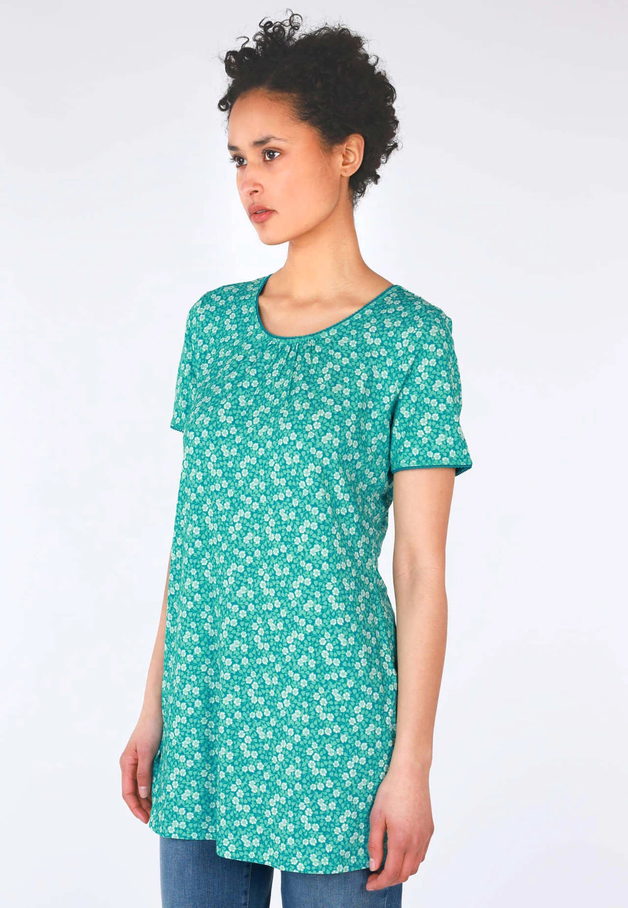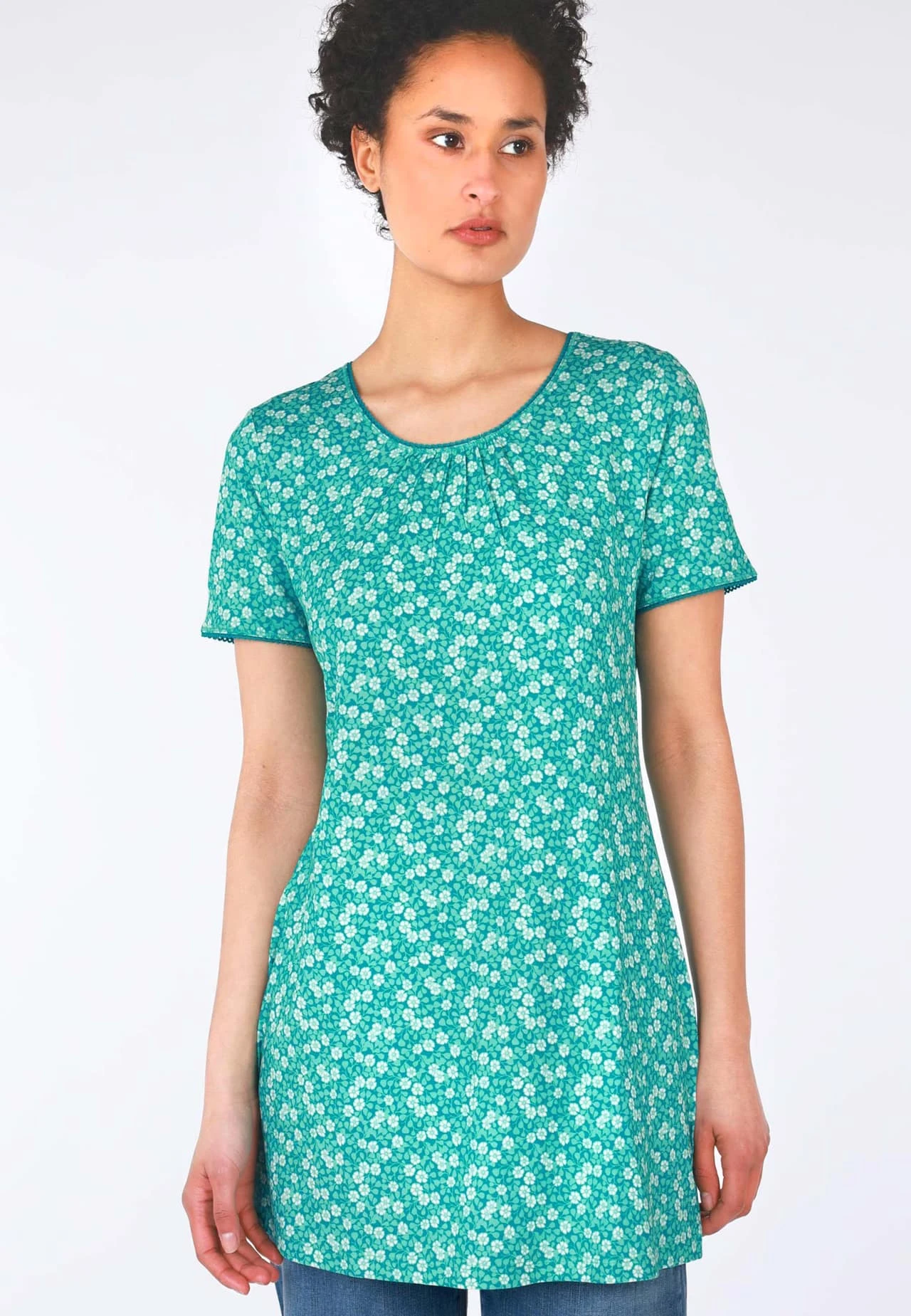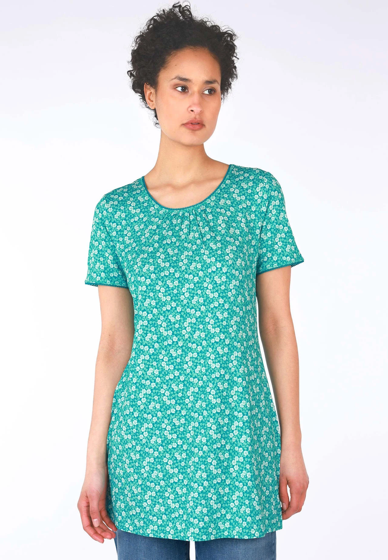 Länge 80cm (M). Unsere Kurzarmtunika Klarissa hat einen femininen Rundhalsausschnitt mit Spitze und einer charmanten kleinen Raffung in der Mitte. Die lässige Passform und hochwertige Viskose-Jersey-Qualität bietet einen hohen Tragekomfort.