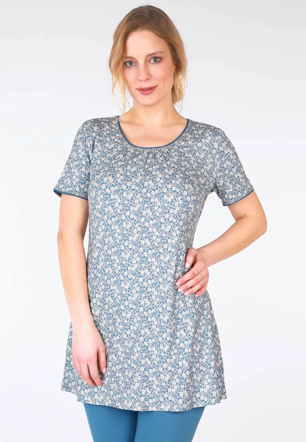 Länge 80cm (M). Unsere Kurzarmtunika Klarissa hat einen femininen Rundhalsausschnitt mit Spitze und einer charmanten kleinen Raffung in der Mitte. Die lässige Passform und hochwertige Viskose-Jersey-Qualität bietet einen hohen Tragekomfort.