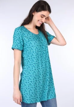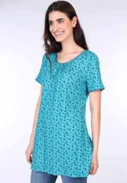Länge (M) 80cm. Unser Kurzarmtunika Klarissa hat einen femininen Rundhalsausschnitt mit Spitze und einer charmanten kleinen Raffung in der Mitte. Die lässige Passform und hochwertige Viskose-Jersey-Qualität bietet einen hohen Tragekomfort.