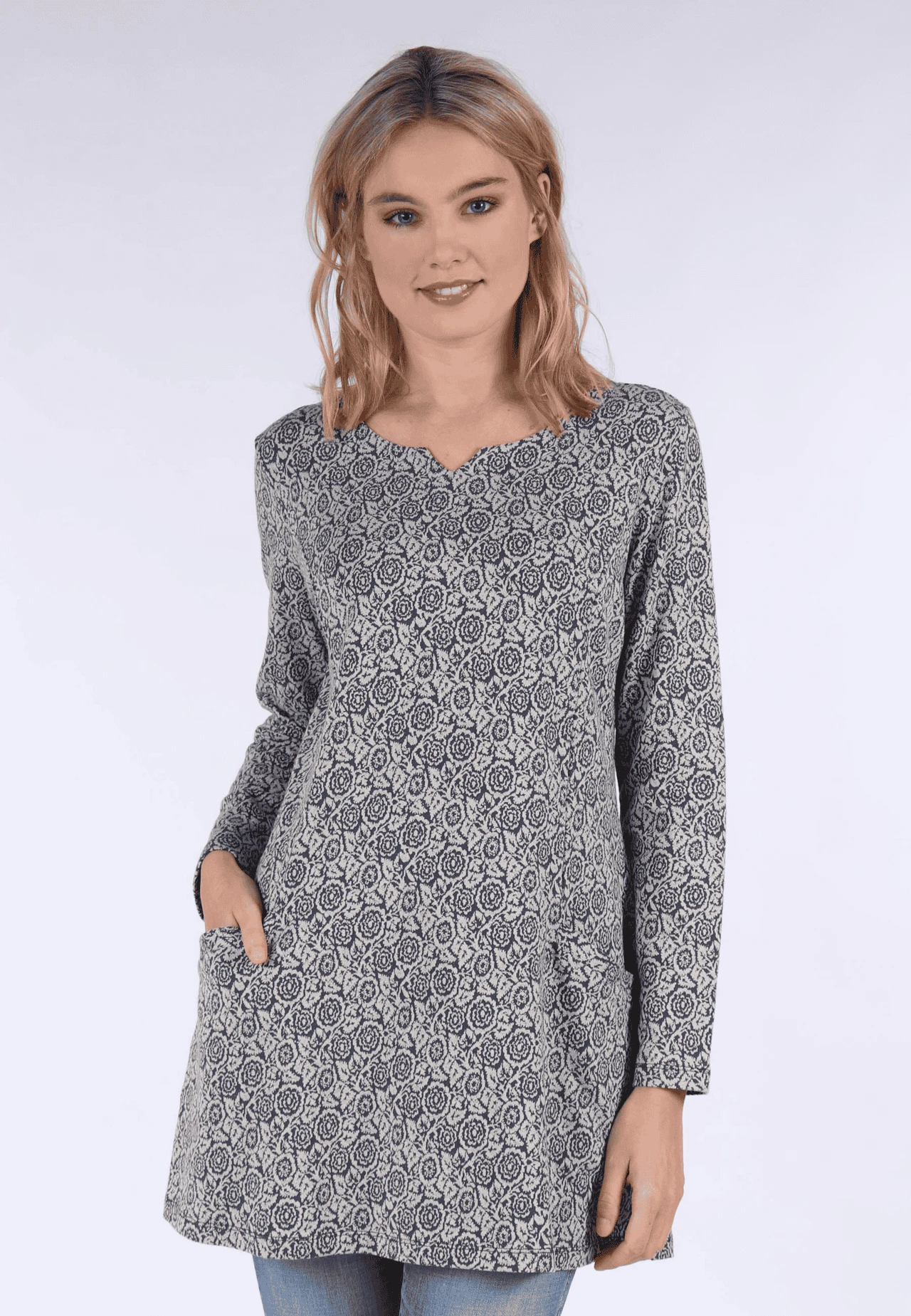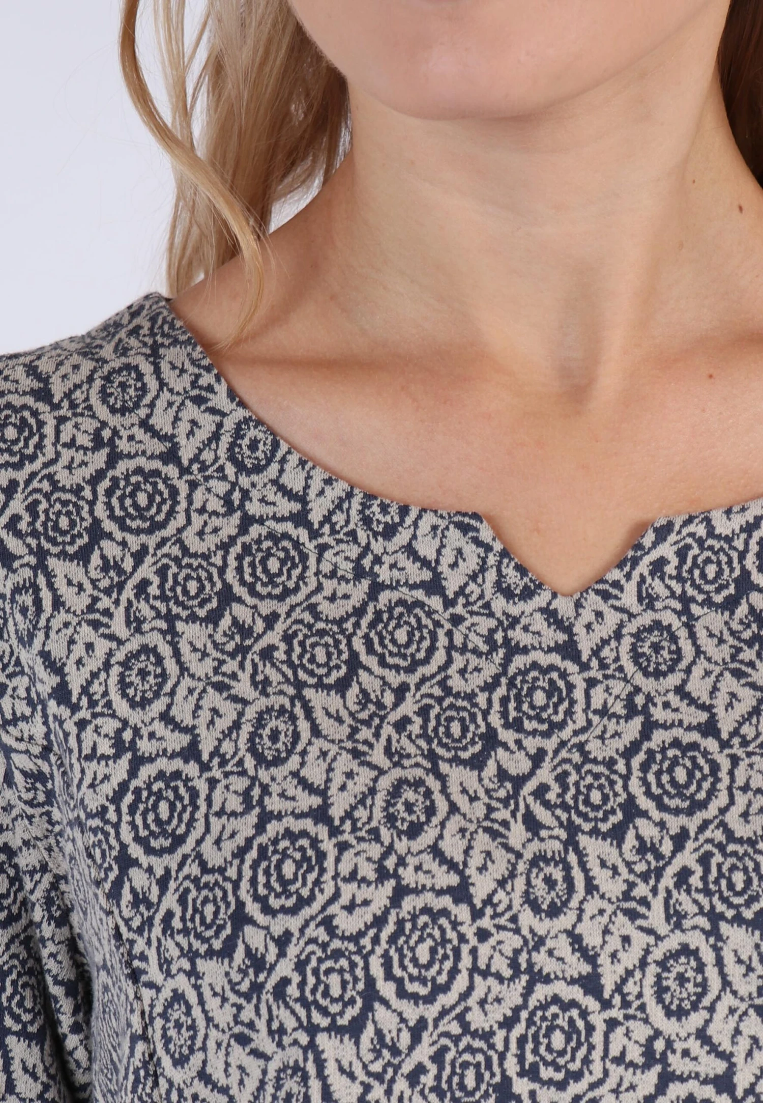 Wunderschöne Jacquard-Tunika mit floralem Muster. Der elegante, feminine Schnitt sorgt für eine tolle Silhouette und ist die perfekte Wahl für jeden Anlass. Die wunderbar softe Qualität macht es zu einem echten Liebliengsstück.