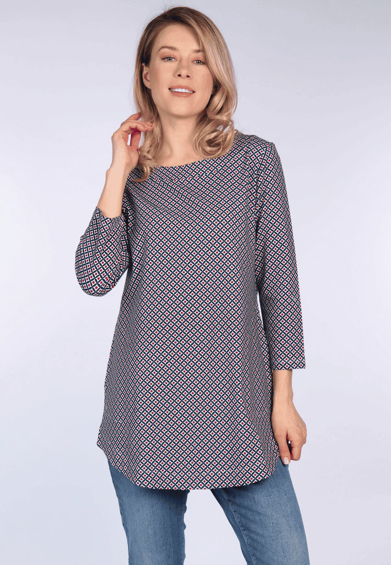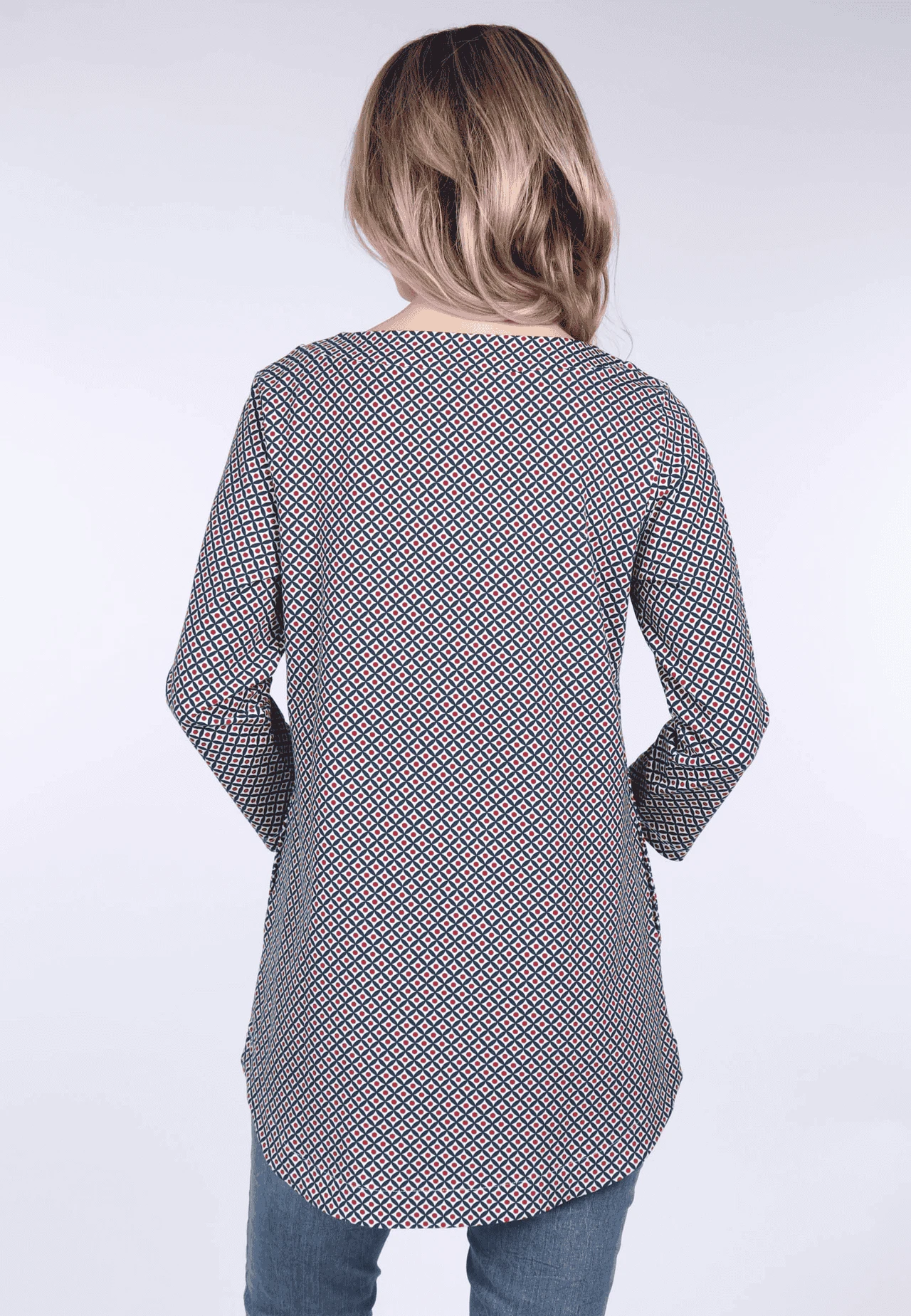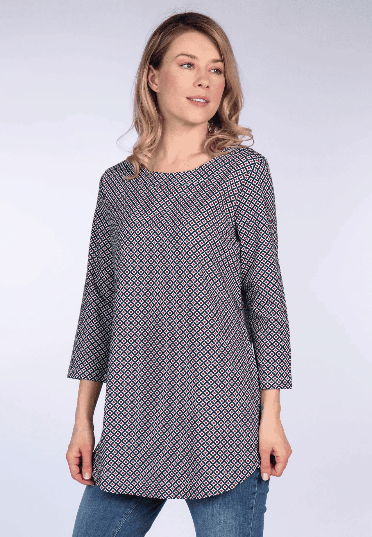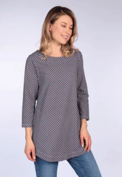 Feminine Tunika mit dreiviertel Arm und Rundhalsausschnitt. Der hochwertige Jerseystoff sorgt für ein angenehmes Tragegefühl. Die umspielende Länge verleihen zusätzlich eine weibliche Silhouette und macht Rajli zu einem echten Lieblingsstück.