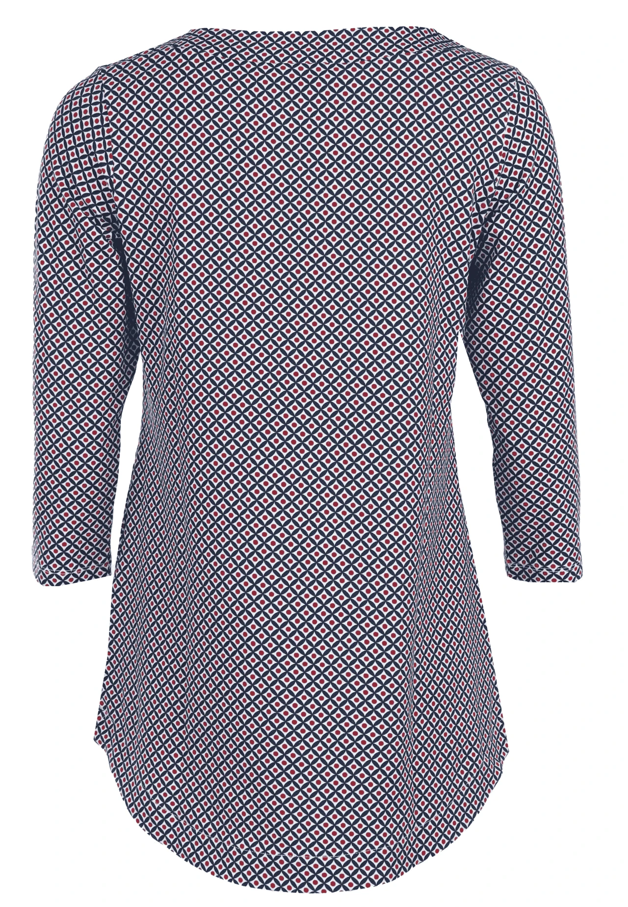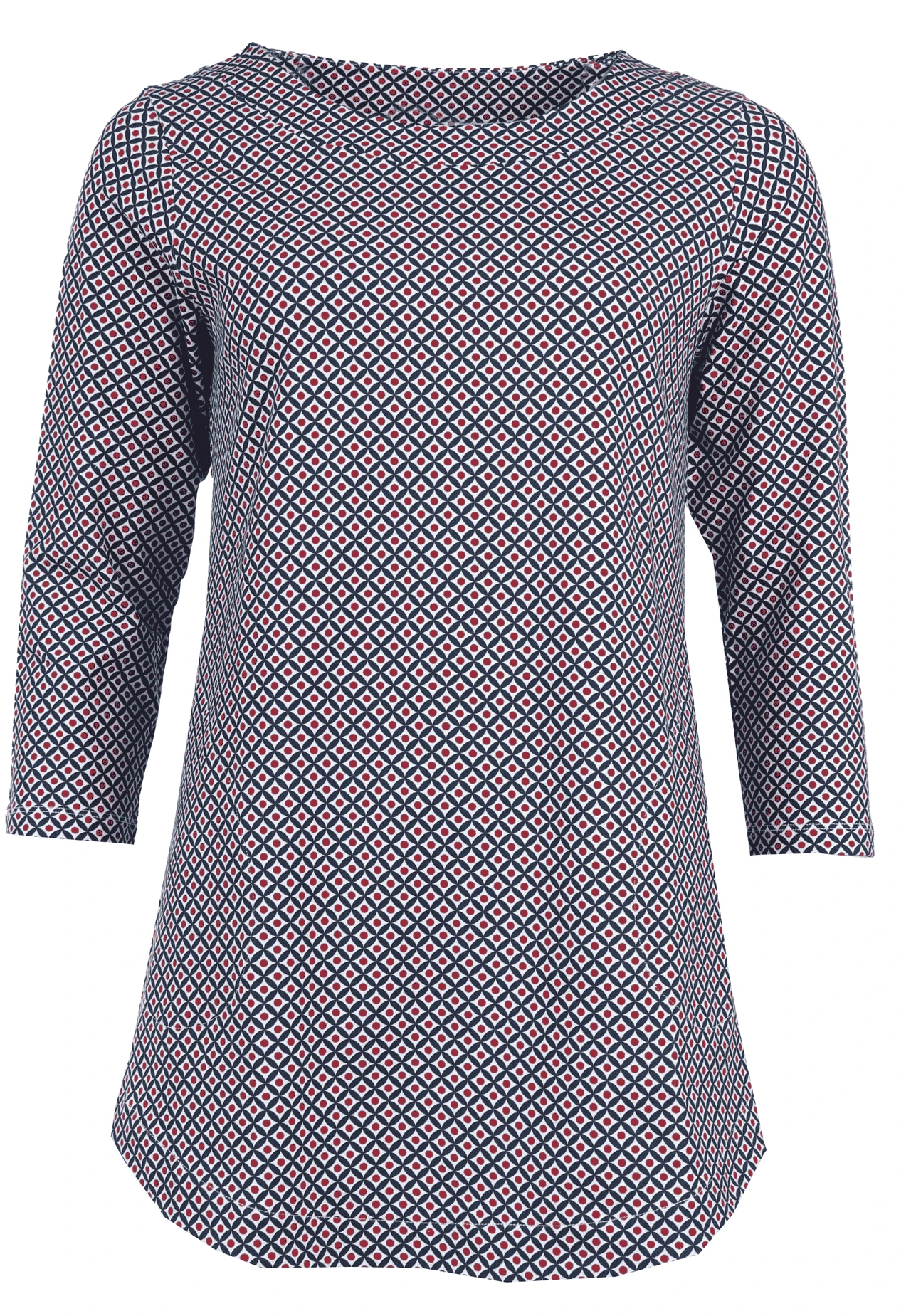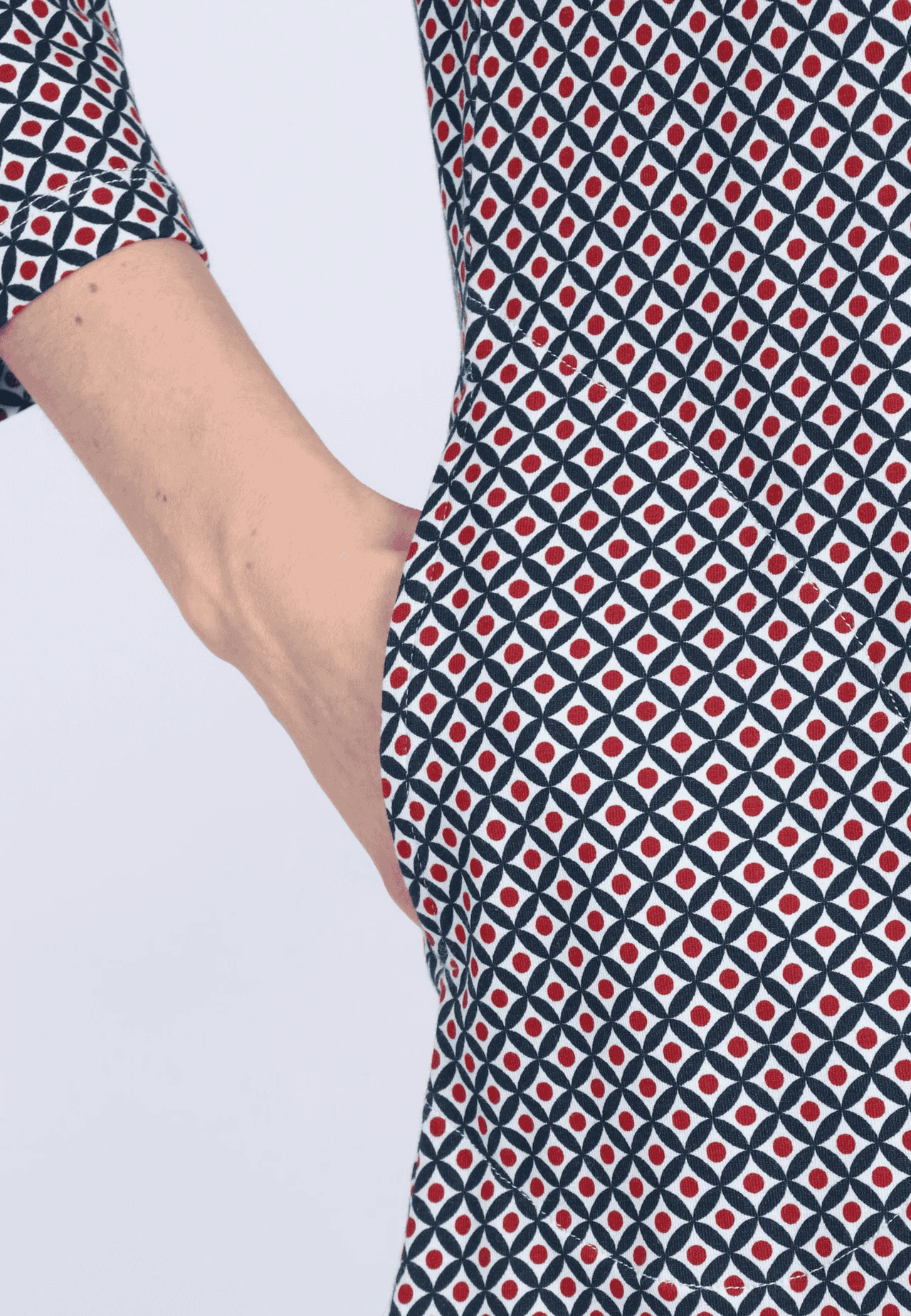 Feminine Tunika mit dreiviertel Arm und Rundhalsausschnitt. Der hochwertige Jerseystoff sorgt für ein angenehmes Tragegefühl. Die umspielende Länge verleihen zusätzlich eine weibliche Silhouette und macht Rajli zu einem echten Lieblingsstück.