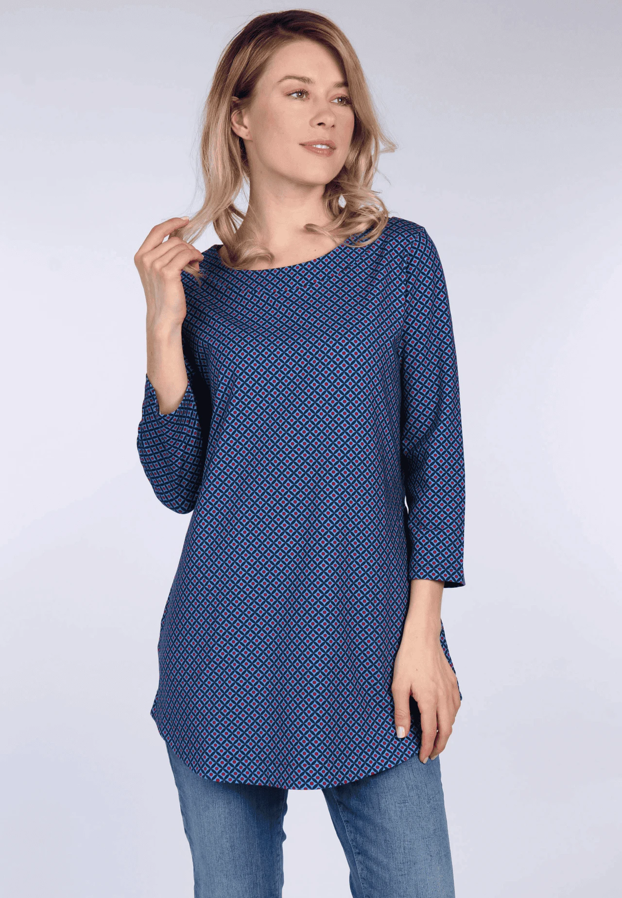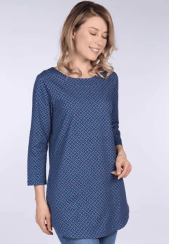 Feminine Tunika mit dreiviertel Arm und Rundhalsausschnitt. Der hochwertige Jerseystoff sorgt für ein angenehmes Tragegefühl. Die umspielende Länge verleihen zusätzlich eine weibliche Silhouette und macht Rajli zu einem echten Lieblingsstück.