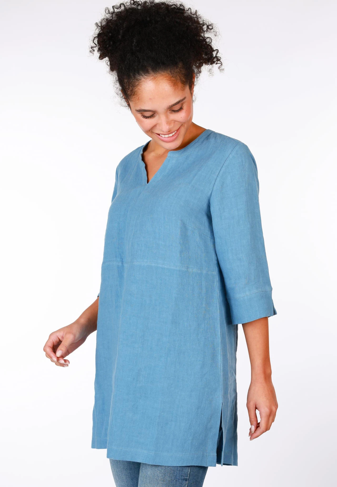Länge 83,5cm (M). Komfortabel und edel zugleich ist unser Leinentunika TIARA. Natürlich, kühlend und hautsympathisch, durch die Verwendung qualitativ hoher Flachsfasern, bietet dieser Klassiker einen perfekten Tragekomfort an den heißen Sommertagen. Stilvoll gekleidet und vielseitig kombinierbar darf sie in keinem Kleiderschrank fehlen.